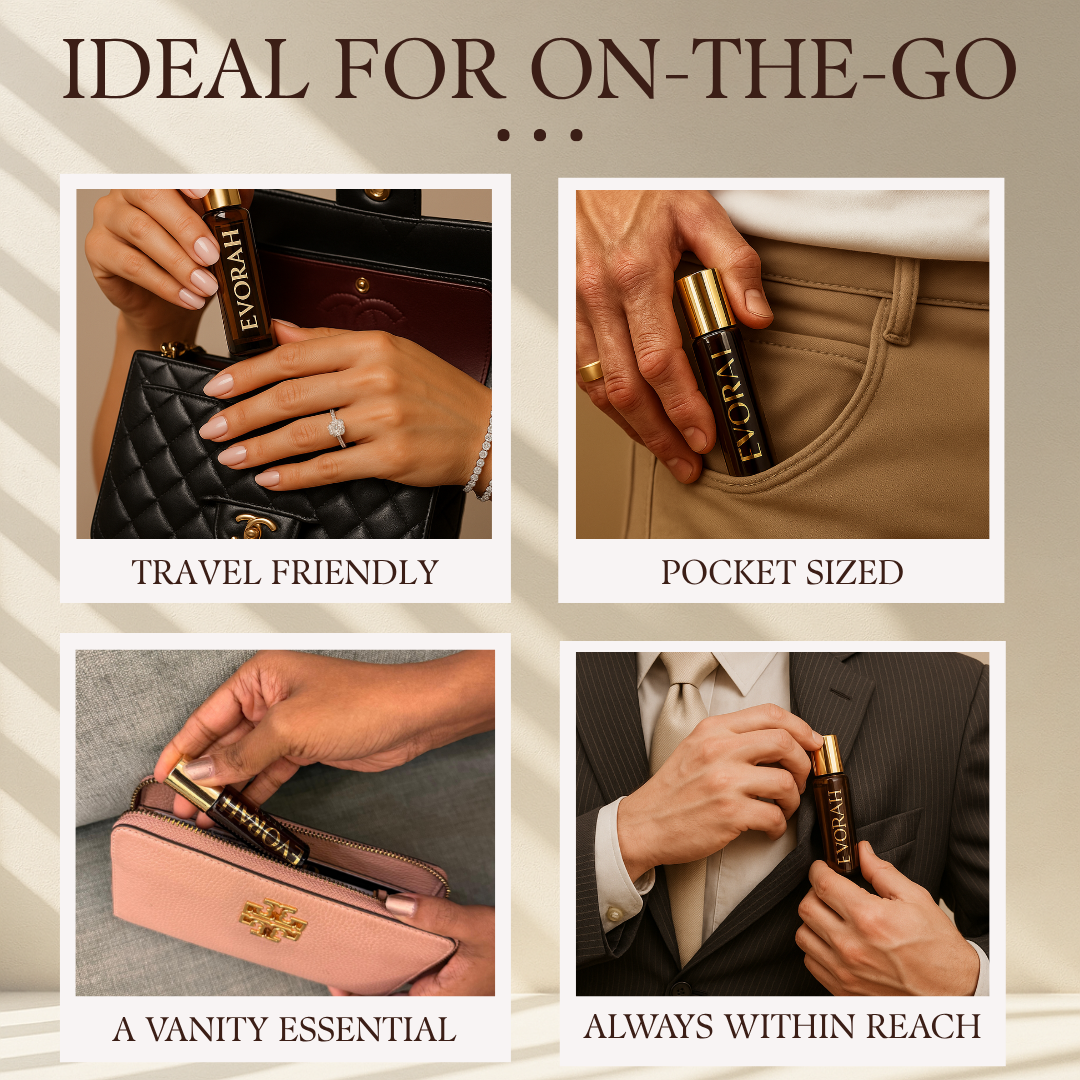 - Long Lasting : EVORAH’s luxury fragrance lasts longer than your longest day—up to 8 hours of irresistible allure, so you can stay enchanting from dawn till dusk.